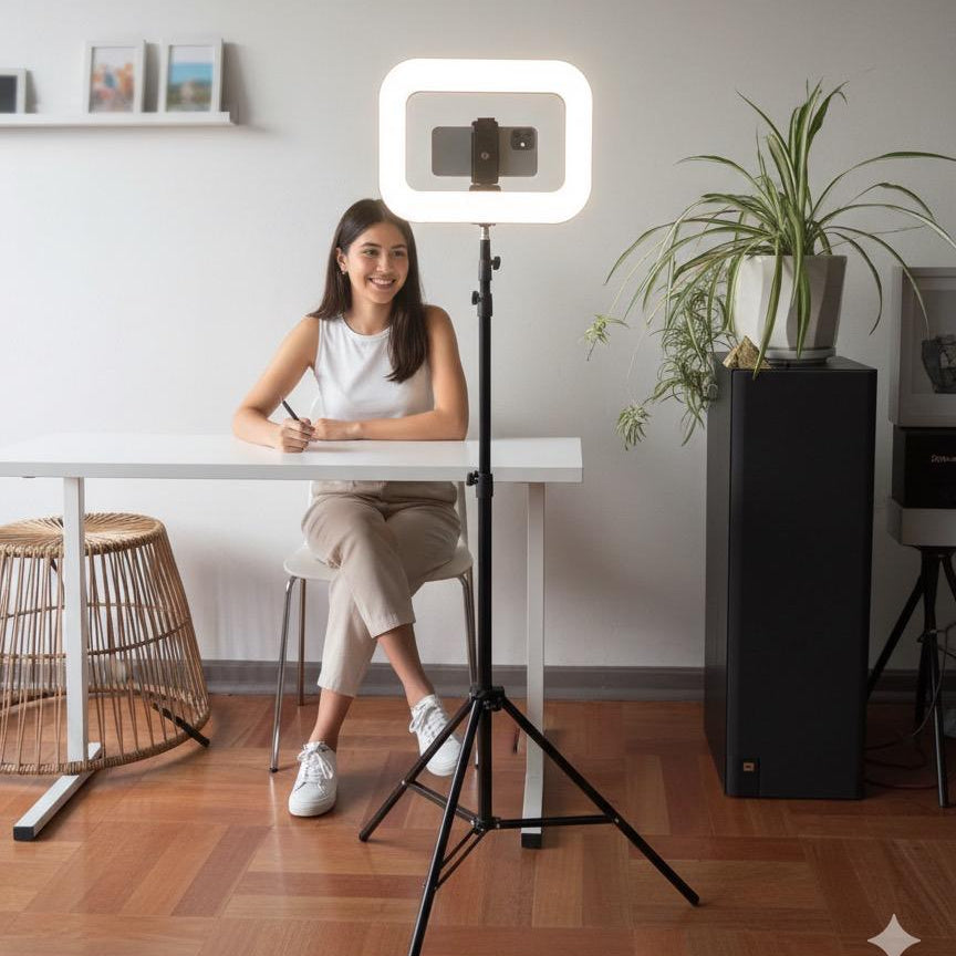 Panel de luz LED cuadrado profesional con 240 LEDs y trípode ajustable. Perfecto para streaming, TikTok, Instagram Lives, fotografía y video. Iluminación uniforme y sin sombras que realza tus contenidos al máximo. ¡Incluye batería recargable para usar sin cables!